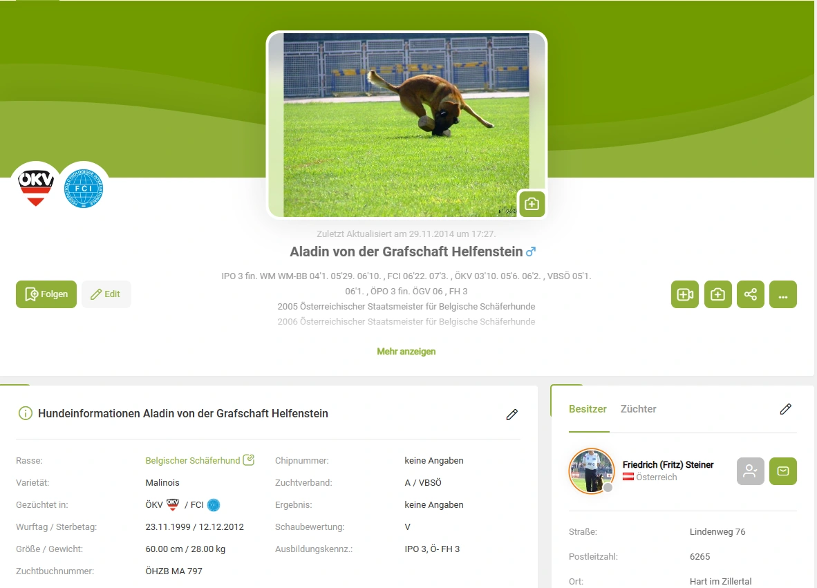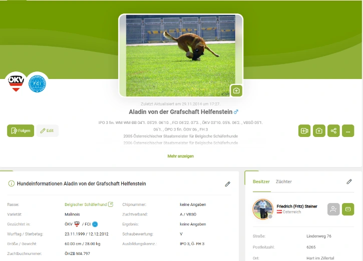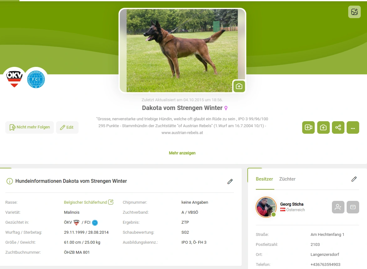 VBSÖ Staatsmeister 2005, 2006 ÖKV Vize-Staatsmeister 2006, 3.Platz FCI-WM 2007